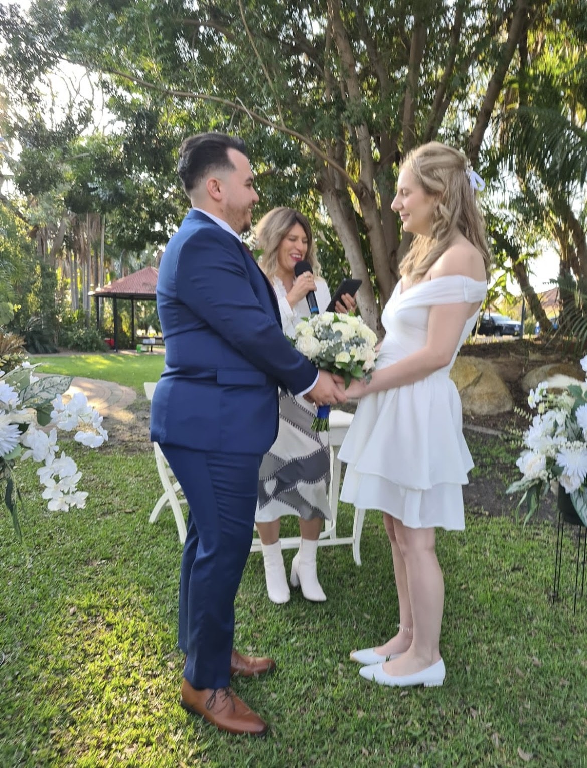 Based in Perth, Aisha is a vibrant and experienced marriage celebrant who specialises in crafting ceremonies that are heartfelt, fun, and beautifully personal. With a natural flair for storytelling and a warm, engaging presence, Aisha brings a perfect balance of romance, laughter, and genuine emotion to every wedding she officiates.
