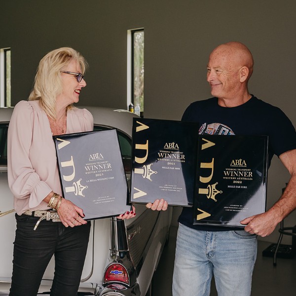 Our unique 1957 Chevy and Jag are a standout in the Southwest and quickly became popular, not just with couples, but also with photographers and wedding guests. We take immense pride in being ABIA Award Winners for Wedding Transport in 2021, 2022, and 2023 . Additionally, we won Wedding Industry Award for Wedding Transport in WA 2025 & 2024 - National Awards in Melbourne we were announced #2 in Australia for Wedding Transport for 2024.