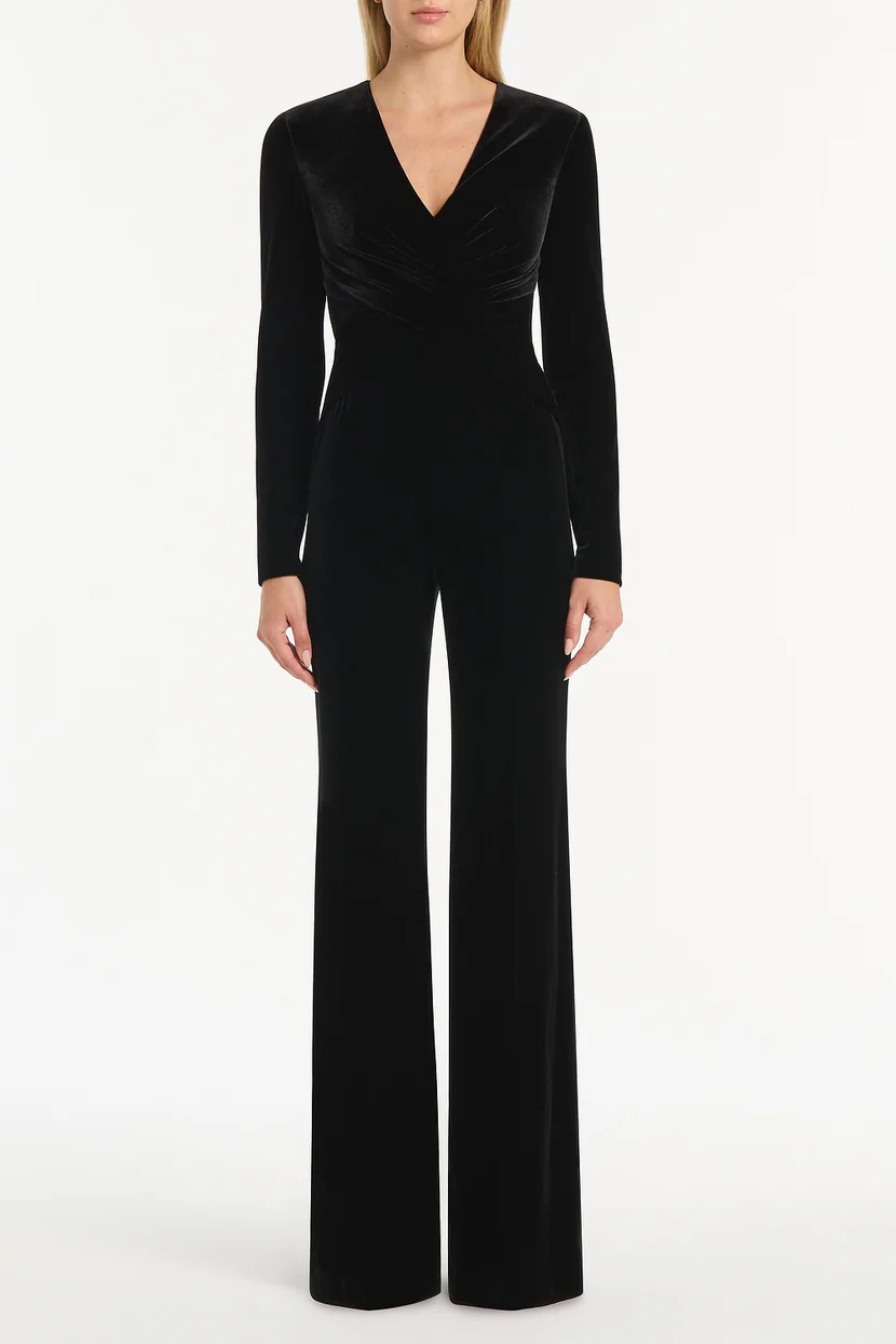 Black Velvet tuck front jumpsuit | Carla Zampatti