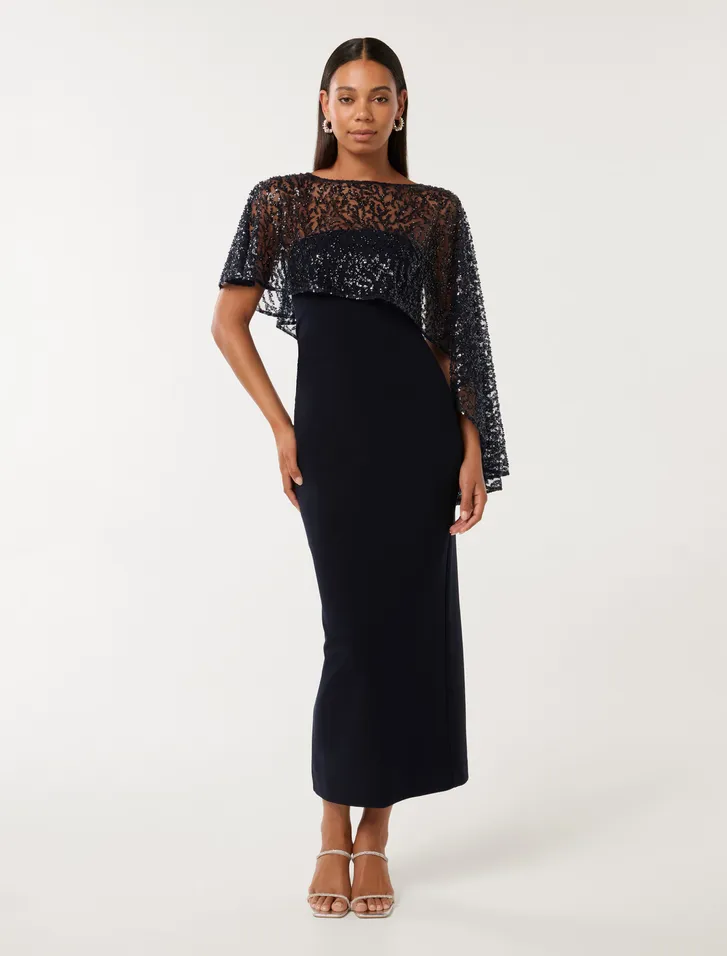 Kara sequin cape maxi dress | Forever New