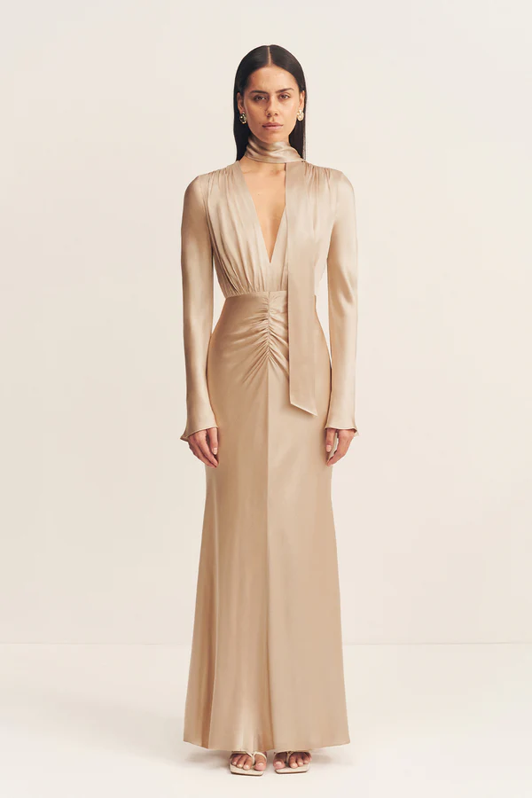 La Lune plunged long sleeve maxi dress | Shona Joy