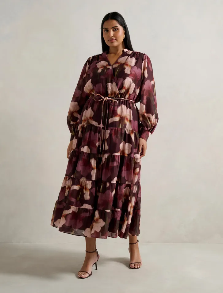 Amanda Curve belted tiered midi dress | Forever New